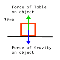 While the object is resting on the table, it does not move up or down,