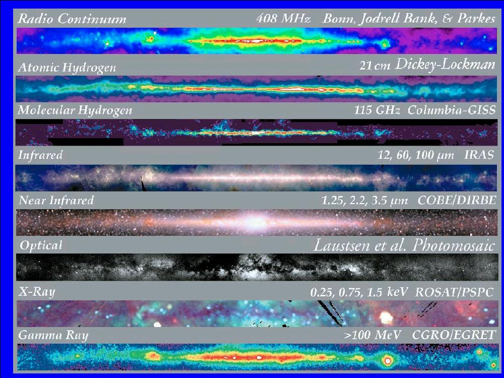 A dramatic example of how important the interstellar medium is can be seen by looking at our galaxy in multiple wavelengths. A small version is presented here, and high resolution images are available through NASA.