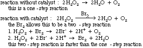 the reaction unchanged. As mentioned earlier, catalysts help lower the activation energy as shown in the following graph. They do this by changing the reaction mechanism.