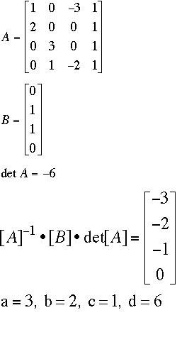 Fe: 1a + 0b -3c = 0d Note that you do not have a square matrix for Matrix A. Following the regular procedures, you should get a 4 x 3 matrix (four rows, three columns). You can make it square without changing the algorithm by adding a column of 1's at the end of the matrix.