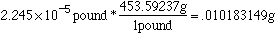 Another Problem 1Question:Convert 2.245x10-5 pounds to grams.Solution: .01018 g