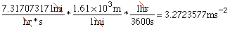 Another Problem 2Question:Car companies often boast about the short time it takes their car to accelerate from 0 mph to 60 mph. If a car has a 0-to-60 time of 8.20 seconds, what is its acceleration in m/s/s?Solution: 3.27 ms-2